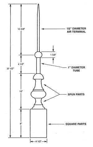 Pipe to extend 12" past spire.