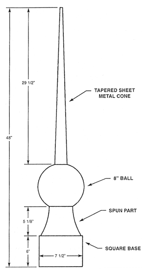 Seal the mounting bracket (provided) to the roof surface for a watertight installation. Set spire base over mounting bracket and attach using fasteners provided. Specify roof slope for brackets.