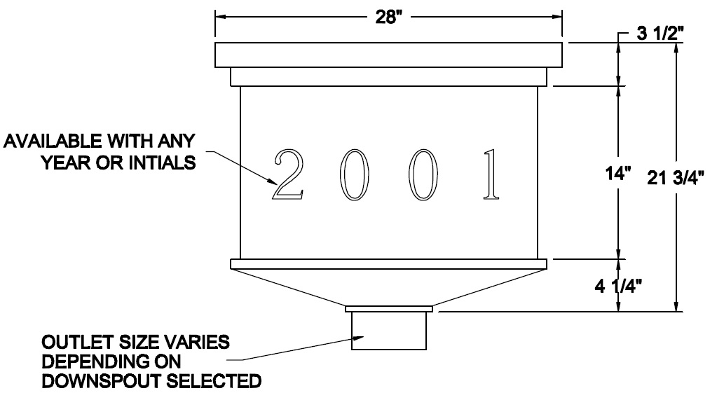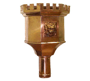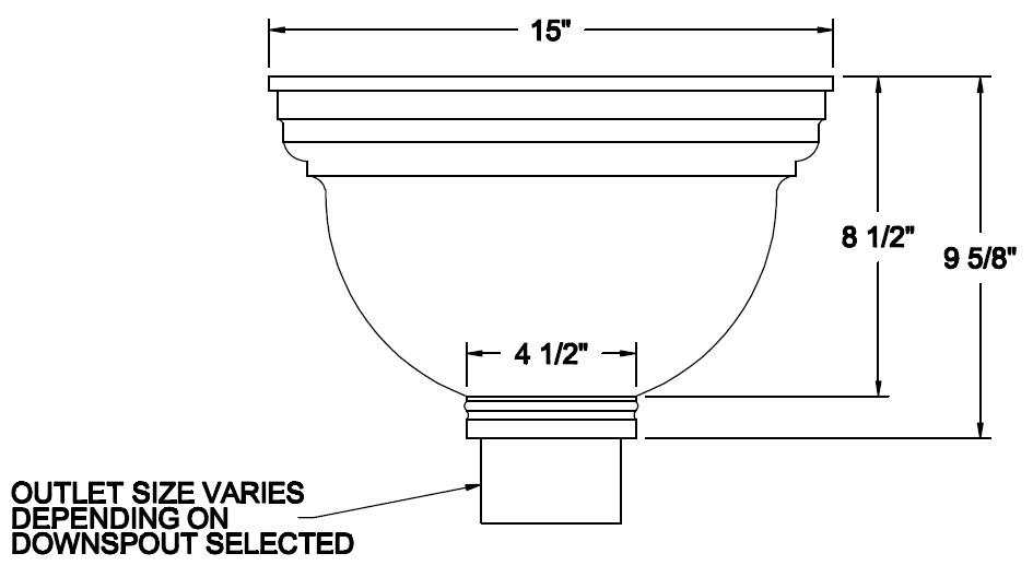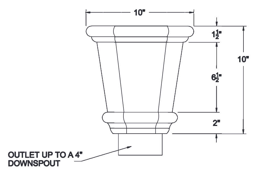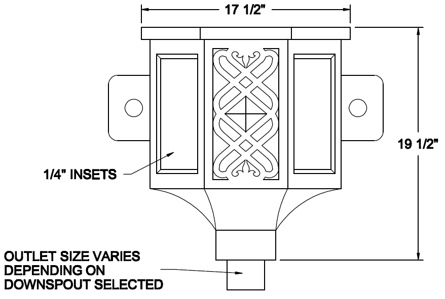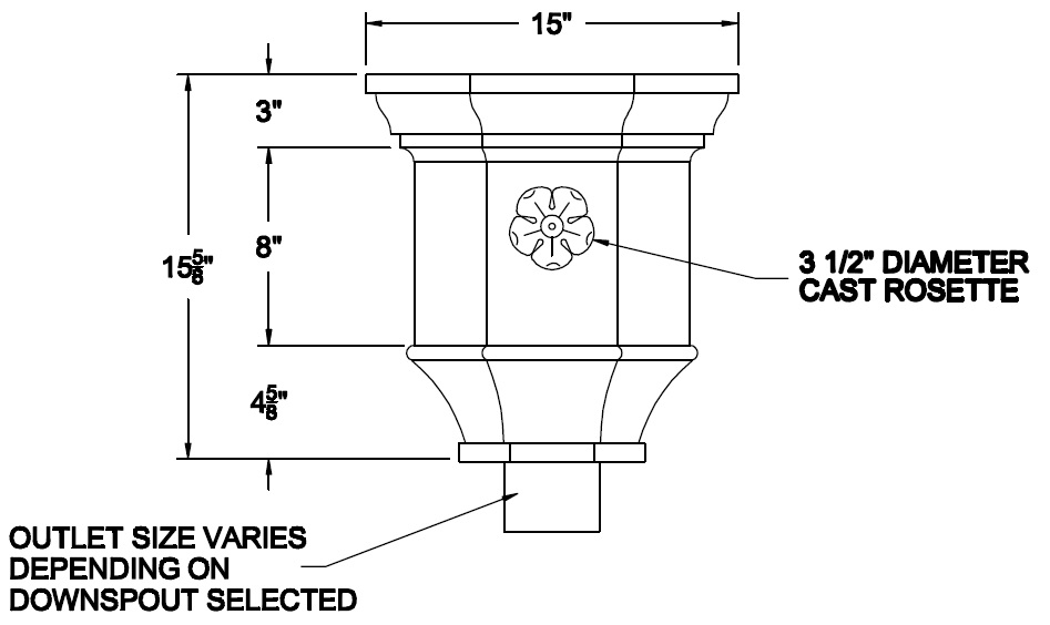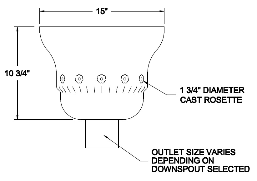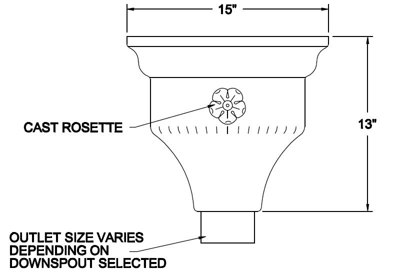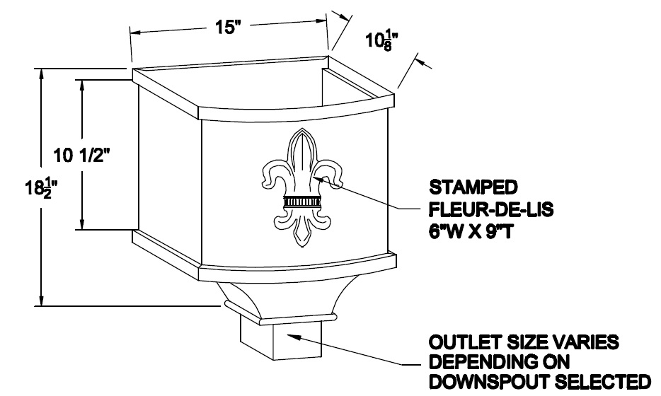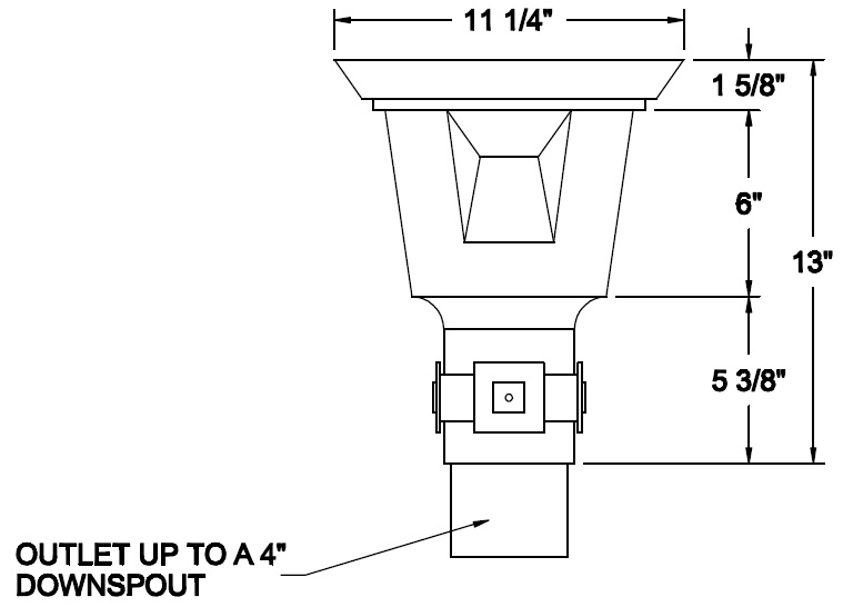 Built in overflow. Downspout strap not part of conductor head.