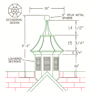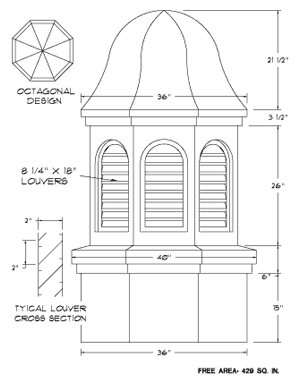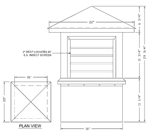Cut and frame opening to 2 1/2\" above roof deck. Butt last roof course to curb. Install base flashing provided. Set cupola over curb. Attach with fasteners provided.OTHER: