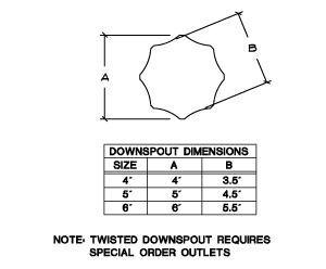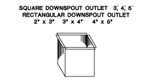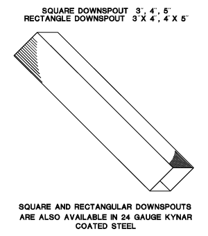 - Downspouts: Round downspouts available from 3" to 8" diameter. Square and rectangle available in any size.