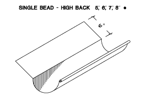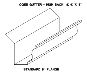 - High Back Gutters: Available in all profiles. Eliminates need for separate eave drip edge. Roof flange insures no blowing rain gets behind gutter to soak wood and cause rotting. Can be installed with roof mount hangers or internal brackets.