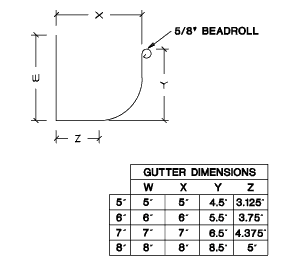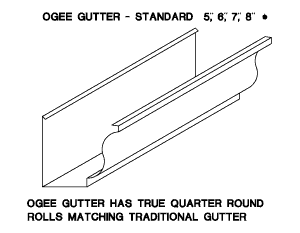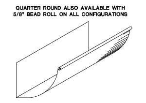 - Quarter Round Gutter: This profile provides exceptional performance and beauty in vertical fascia applications. Works well with slate or standing seam panels. Available with hemmed return or traditional bead roll.